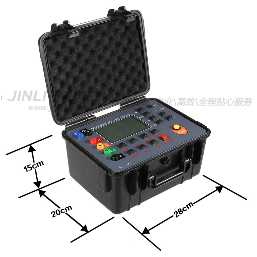JL7008雙鉗多功能接地電阻測試儀由主機、監控軟件、測試線、USB線、接地針組成,具有歷史數據讀取、查閱、保存、報表、打印等功能。
